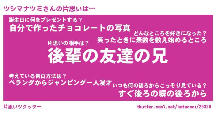 | ヒーロー風カッコイイあだ名 | 『スーパーツシマナツミ』『黄金騎士ツシ』 |