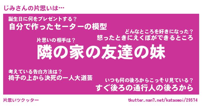 | ヘコむあだ名 | 『じみもー』『つくし』『じみっちょ』 |