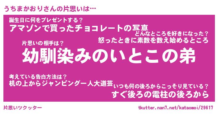 | ヒーロー風カッコイイあだ名 | 『スーパーウチマカオリ』『魔戒騎士ウチ』 |