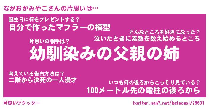 | 女子向けラノベタイトル風あだ名 | 『(仮)なかおかみやこのやんごとなき事情』 |