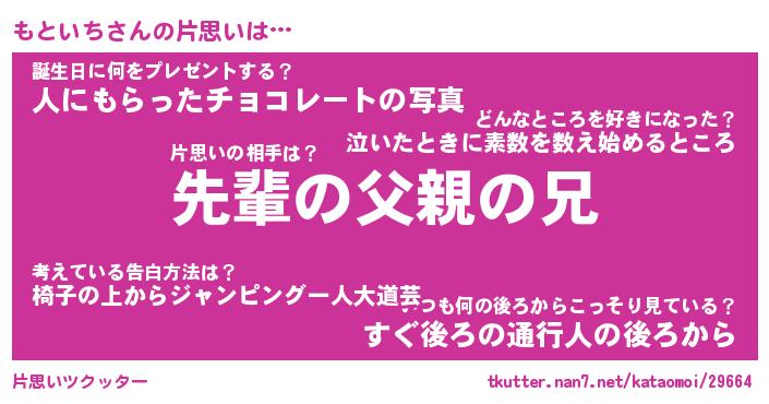 | 男性向けラノベタイトル風あだ名 | 『もといちの憂鬱』 |