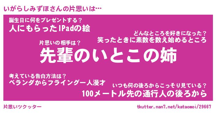 | ヒーロー風カッコイイあだ名 | 『スーパーイガラシミズホ』 |
