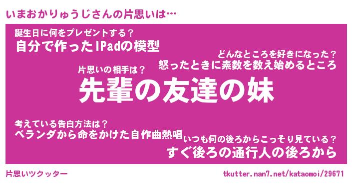 | 男性向けラノベタイトル風あだ名 | 『いまおかりゅうじの憂鬱』 |
