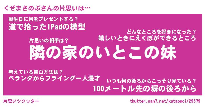 | 女子向けラノベタイトル風あだ名 | 『(仮)くぜまさのぶのやんごとなき事情』 |