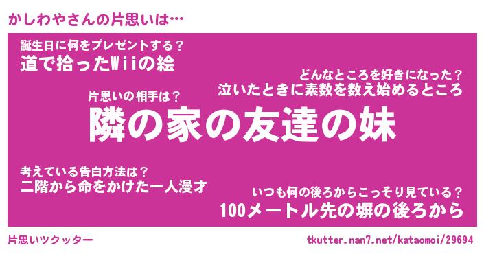 | ファンタジー風あだ名 | 『カシフェル』『エターナルカシワヤー』 |