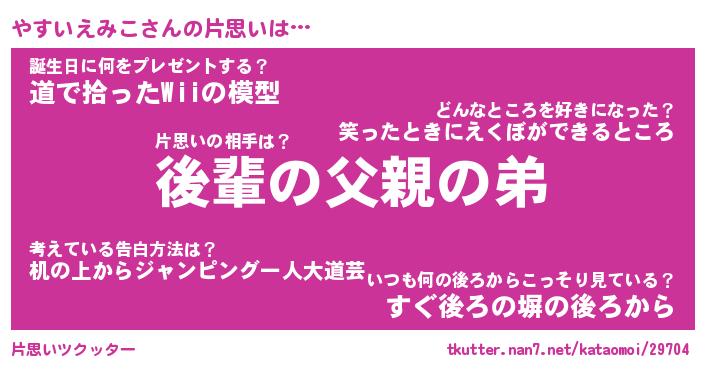 | 意味不明あだ名 | 『ペロリンやすいえみこ』 |