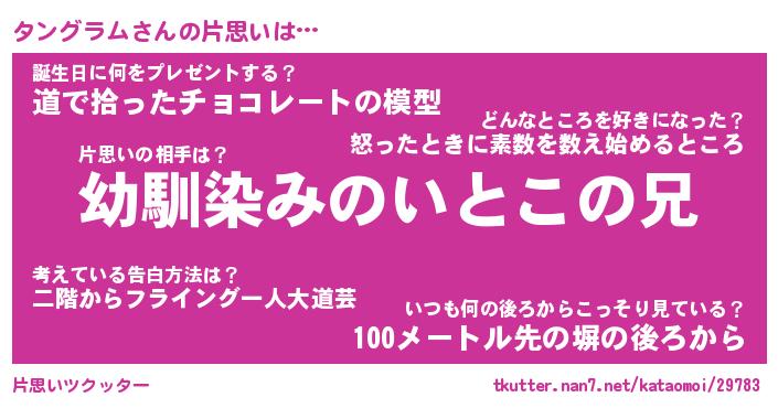 | 女子向けラノベタイトル風あだ名 | 『(仮)タングラムのやんごとなき事情』 |