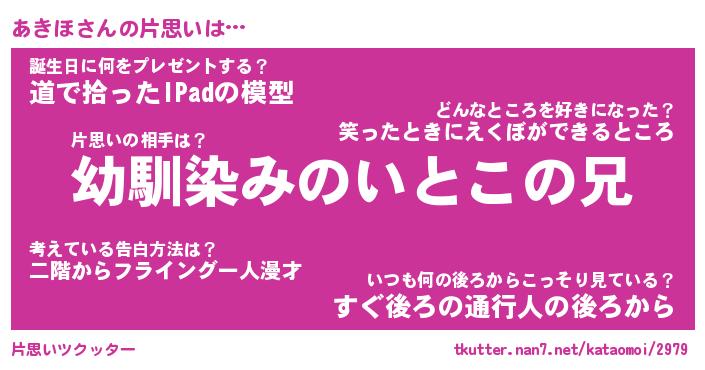 | ヘコむあだ名 | 『あきにゅー』『つくし』 |