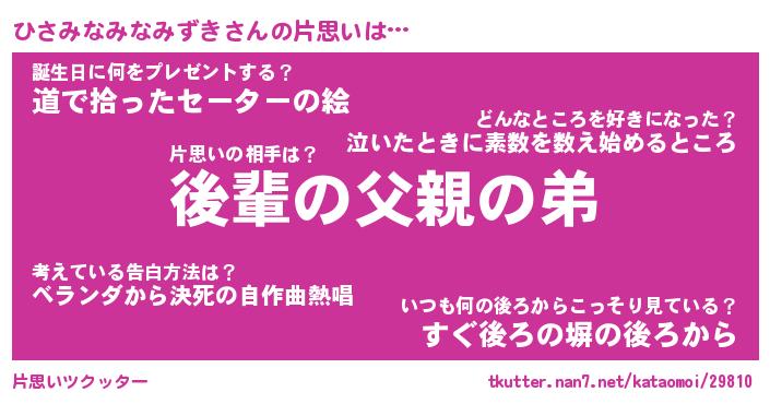 | 胡散臭い通販商品みたいなあだ名 | 『億万長者になれるブレスレット…その名も「ひさみなみなみずき」』 |