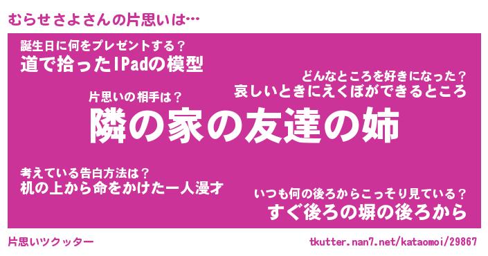 | 胡散臭い通販商品みたいなあだ名 | 『必ず成功する霊験あらたかなお札…その名も「むらせさよ」』 |