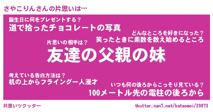 | ファンタジー風あだ名 | 『サヤフェル』『エターナルサヤコリンー』 |