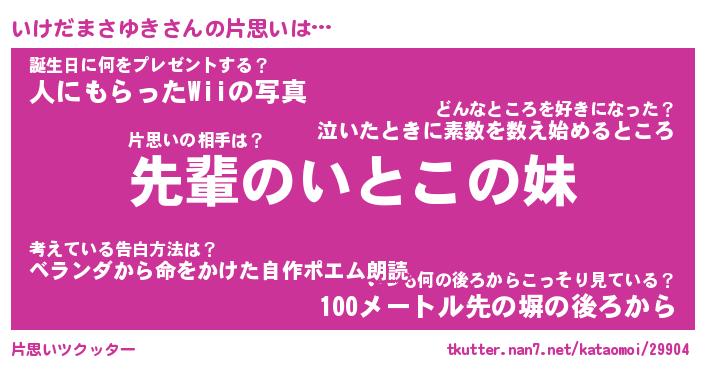 | ヘコむあだ名 | 『いけにゅー』『つくし』『いけお』 |