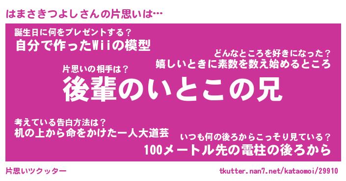| 胡散臭い通販商品みたいなあだ名 | 『モテモテ間違いなし水晶球…その名も「はまさきつよし」』 |
