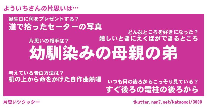 | 意味不明あだ名 | 『ペロリンよういち』『永久保存よういち』 |