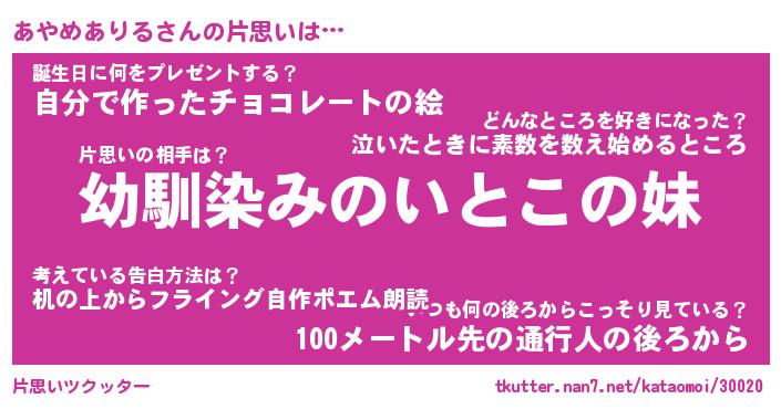 | 胡散臭い通販商品みたいなあだ名 | 『必ず成功する水晶球…その名も「あやめありる」』 |