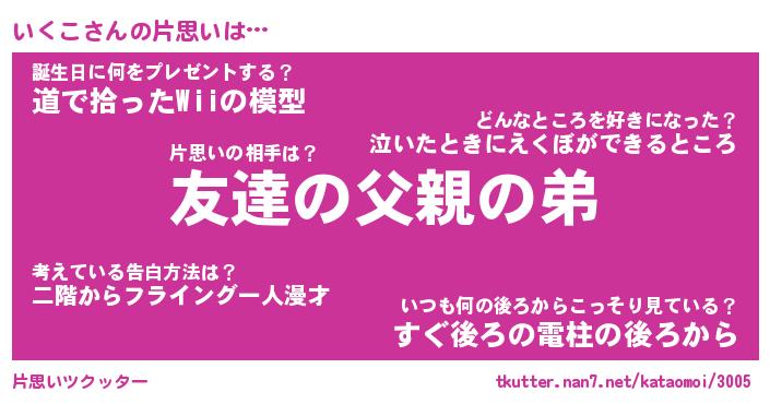 | ピコ太郎風あだ名 | 『イコ三郎』『ピイ二郎』『イク三郎』 |