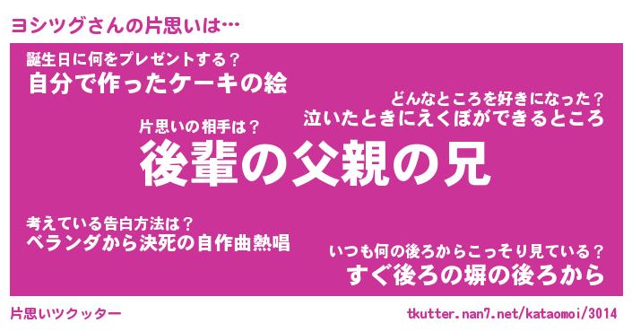 | ヘコむあだ名 | 『ヨシにゅー』『牛乳』『ヨシぷりん』 |