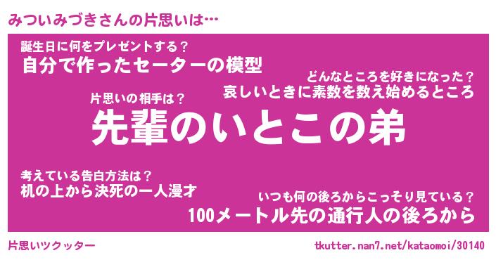 | 胡散臭い通販商品みたいなあだ名 | 『モテモテ間違いなし水晶球…その名も「みついみづき」』 |