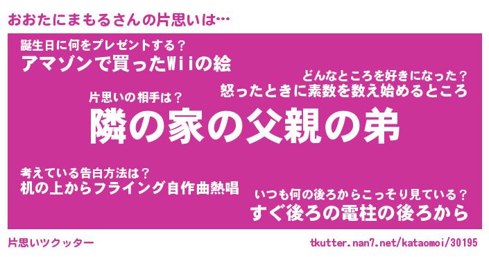| 男性向けラノベタイトル風あだ名 | 『おおたにまもるの憂鬱』 |