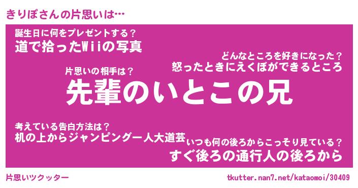 | ヘコむあだ名 | 『きりもー』『豆乳』『きりぷりん』 |