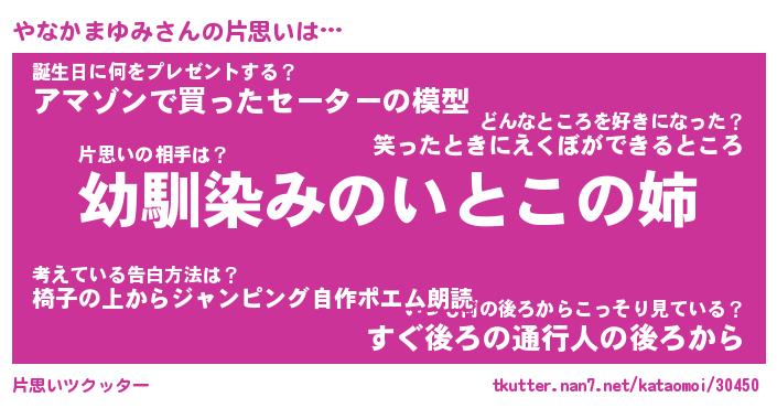 | 男性向けラノベタイトル風あだ名 | 『やなかまゆみの憂鬱』 |