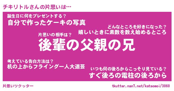 | ヒーロー風カッコイイあだ名 | 『スーパーチキリトル』『暗黒騎士チキ』 |