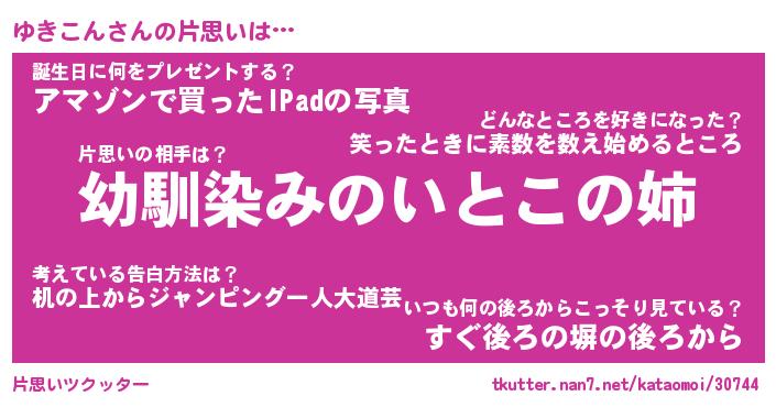 | 女子向けラノベタイトル風あだ名 | 『(仮)ゆきこんのやんごとなき事情』 |