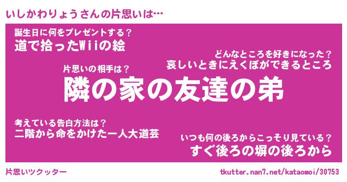 | 胡散臭い通販商品みたいなあだ名 | 『必ず成功する霊験あらたかなお札…その名も「いしかわりょう」』 |