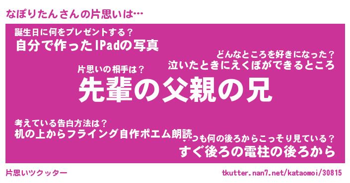 | 男性向けラノベタイトル風あだ名 | 『なぽりたんの憂鬱』 |