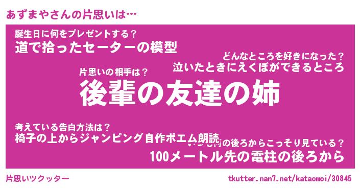 | ヘコむあだ名 | 『あずっふぃ~』『牛乳』『あずお』 |