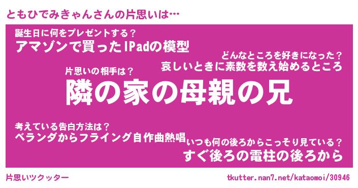 | ヘコむあだ名 | 『ともにー』『なまこ酢』『ともを』 |