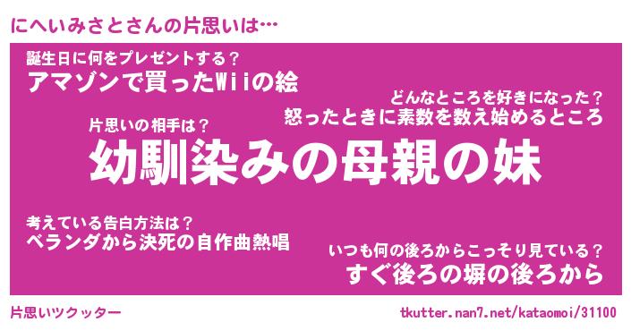 | 胡散臭い通販商品みたいなあだ名 | 『必ず成功するブレスレット…その名も「にへいみさと」』 |