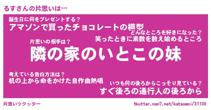 | ヘコむあだ名 | 『るすにゅー』『つくし』 |