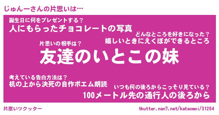 | 胡散臭い通販商品みたいなあだ名 | 『億万長者になれる水晶球…その名も「じゅんー」』 |