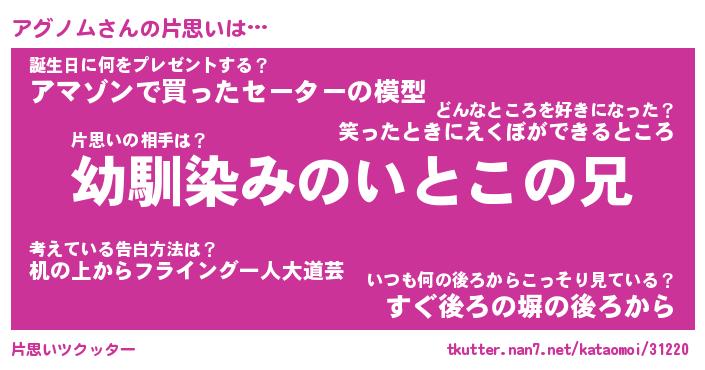 | 男性向けラノベタイトル風あだ名 | 『アグノムの憂鬱』 |