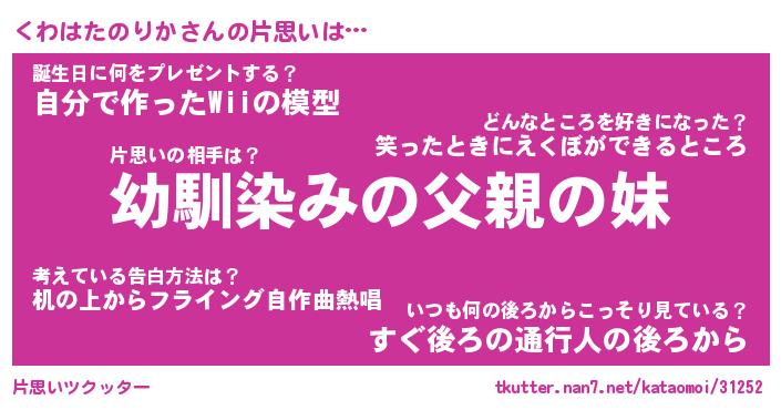| 胡散臭い通販商品みたいなあだ名 | 『必ず成功する水晶球…その名も「くわはたのりか」』 |