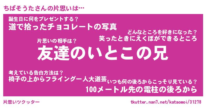 | 恥ずかしいあだ名 | 『プリティーちばそうた』『ちばっちょ』 |