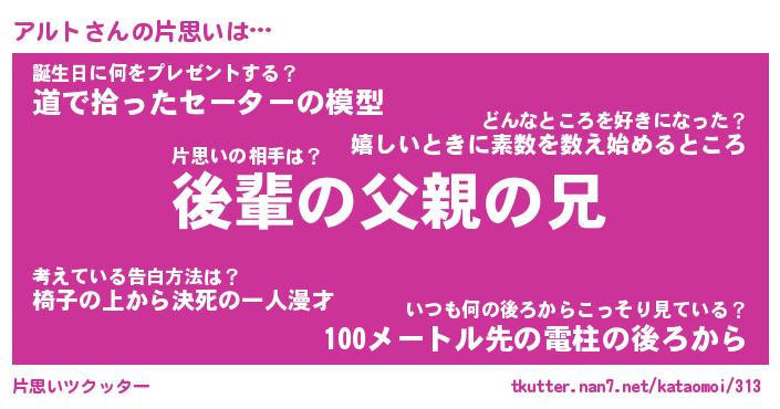 | 意味不明あだ名 | 『ペロリンアルト』『アルトフォーエバー』 |