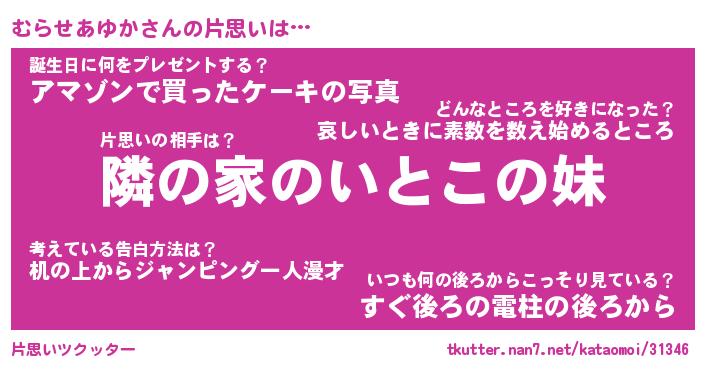 | 女子向けラノベタイトル風あだ名 | 『(仮)むらせあゆかのやんごとなき事情』 |