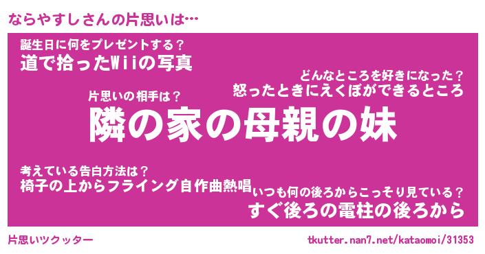 | ポケモン風あだ名 | 『ナラチュウ』『ナラヤダネ』 |