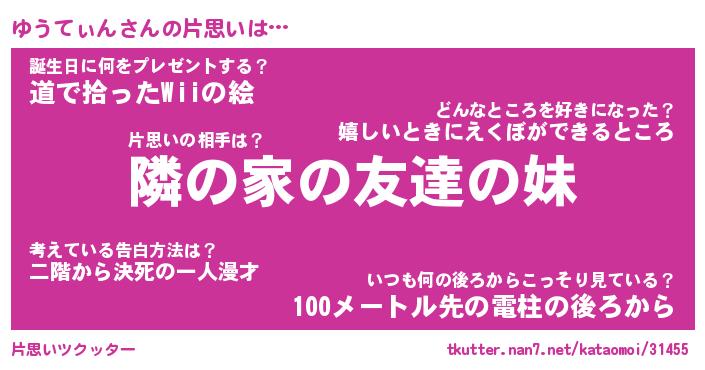 | 胡散臭い通販商品みたいなあだ名 | 『必ず成功する霊験あらたかなお札…その名も「ゆうてぃん」』 |
