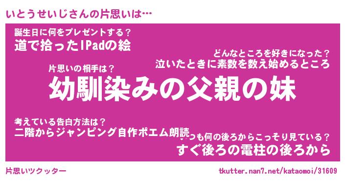 | 胡散臭い通販商品みたいなあだ名 | 『必ず成功する水晶球…その名も「いとうせいじ」』 |