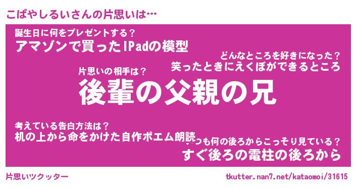 | ヘコむあだ名 | 『こばふぇ~』『酢こんぶ』 |