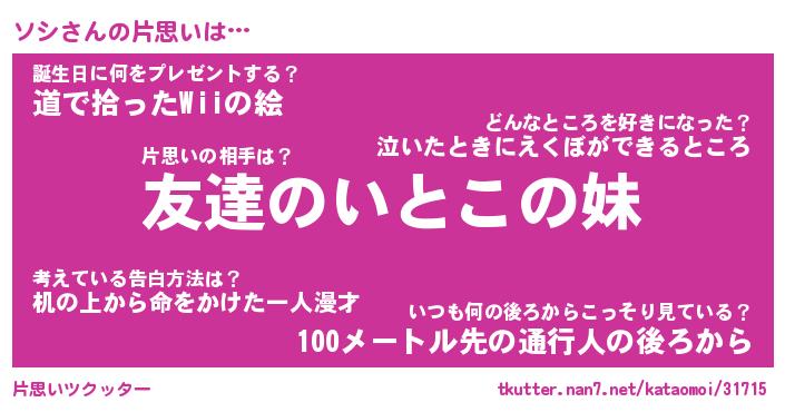 | ピコ太郎風あだ名 | 『ソコ五郎』『ピソ一郎』『ソシ六郎』 |