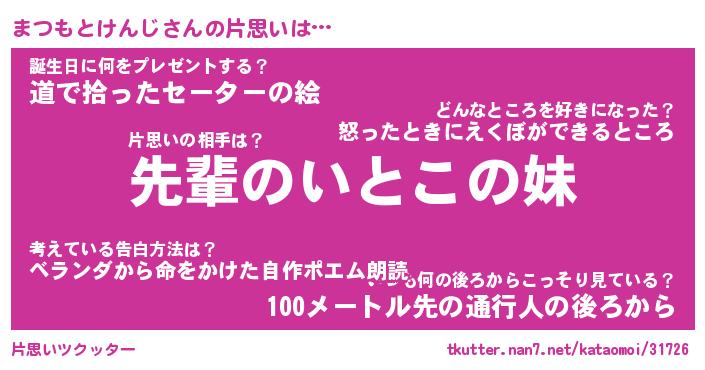 | 胡散臭い通販商品みたいなあだ名 | 『モテモテ間違いなし霊験あらたかなお札…その名も「まつもとけんじ」』 |