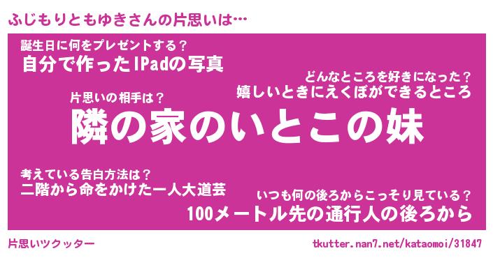 | 女子向けラノベタイトル風あだ名 | 『(仮)ふじもりともゆきのやんごとなき事情』 |