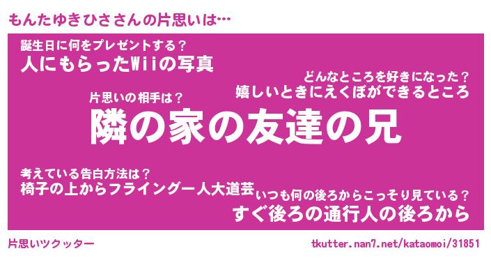 | ヘコむあだ名 | 『もんっふぃ~』『牛乳』『もん太郎』 |