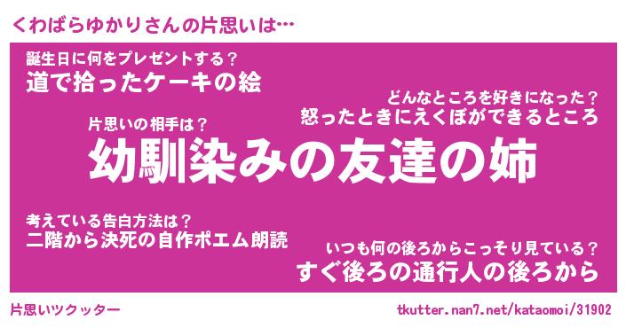 | 男性向けラノベタイトル風あだ名 | 『くわばらゆかりの憂鬱』 |