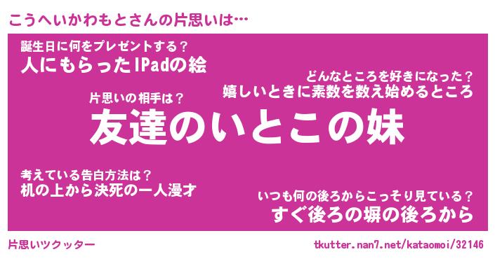 | 伝説のあだ名 | 『封印されしスナイパーこうへいかわもと』 |