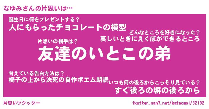 | ヘコむあだ名 | 『なゆもー』『酢こんぶ』『なゆ太郎』 |